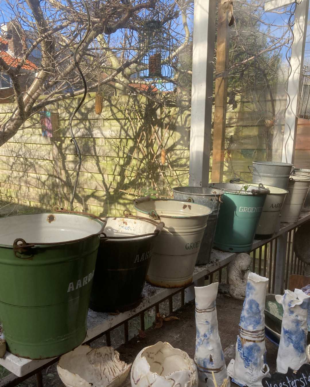 En die emmers? Die staan nu braaf te wachten op nieuwe potgrond – die ik zelf ga maken.